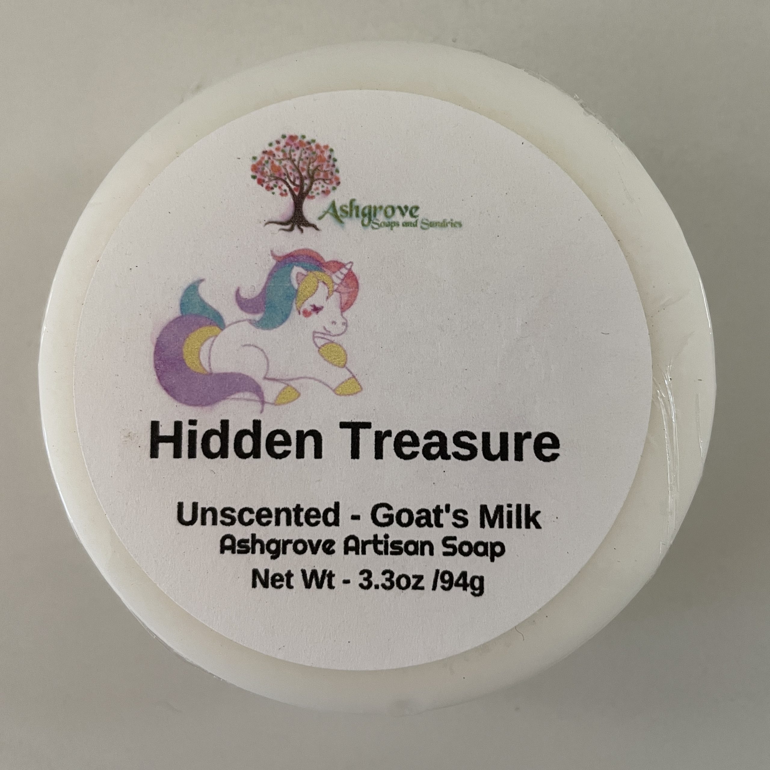 Ashgrove has a large variety of fun clear soaps with toy figures in them; unicorns, bugs, fish, frogs, animals, sea creatures. Surprise someone special with our hidden treasure soaps. They have toy figures inside a glycerin goat’s milk soap. The toy is revealed as the soap is used.